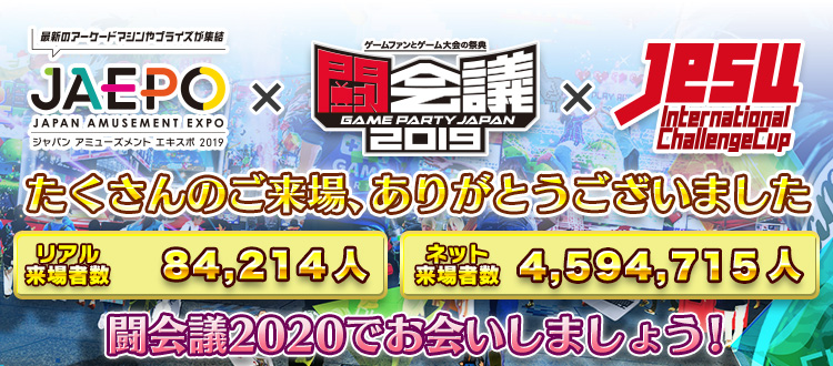 - “JAEPO×闘会議×JeSU 2019”会場来場者8万4,214人、ネット来場者459万4,715人を動員